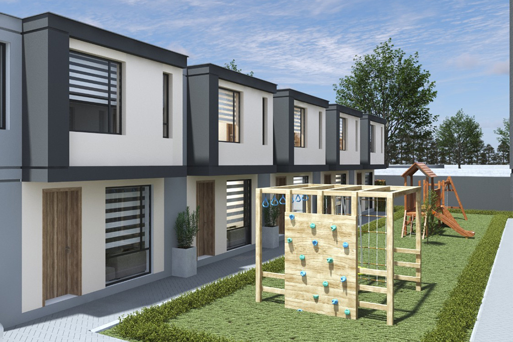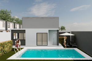 Proyecto inmobiliario de 21 casas unifamiliares con dos modelos: Tipo 1 (95,28 m²) y Tipo 2 (91,13 m²).
